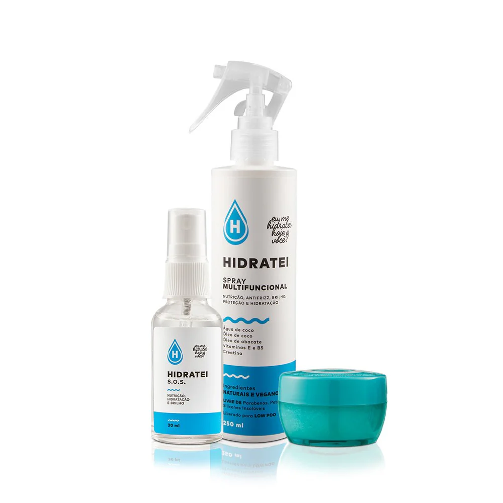 Um trio poderoso para cabelos radiantes! O Kit Leave-in + SOS + SHRP da Hidratei combina hidratação profunda, nutrição intensa e proteção avançada para fios saudáveis, brilhosos e alinhados.